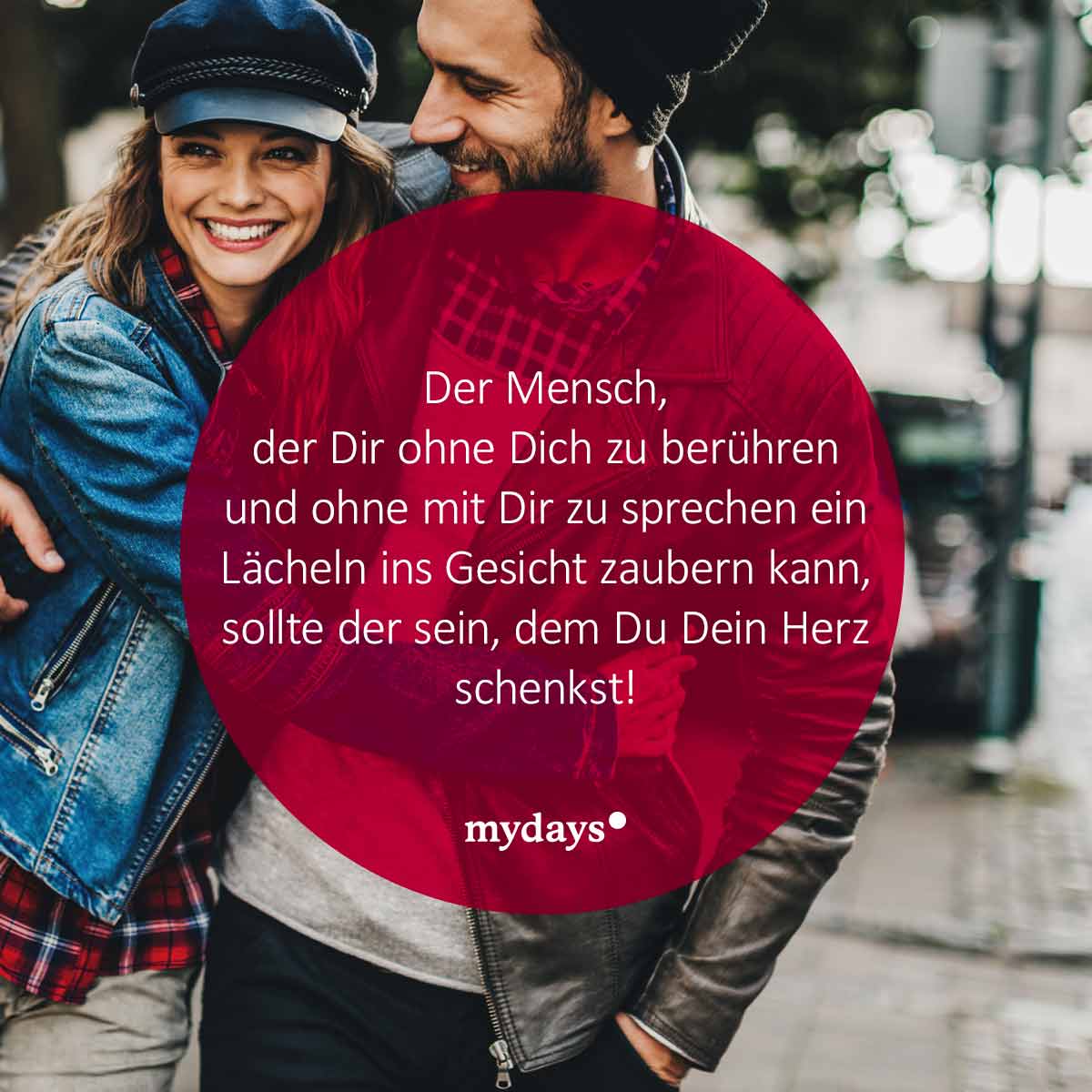 - Der Mensch, der Dir, ohne Dich zu berühren und ohne mit Dir zu sprechen, ein Lächeln ins Gesicht zaubern kann, sollte der sein, dem Du Dein Herz schenkst!